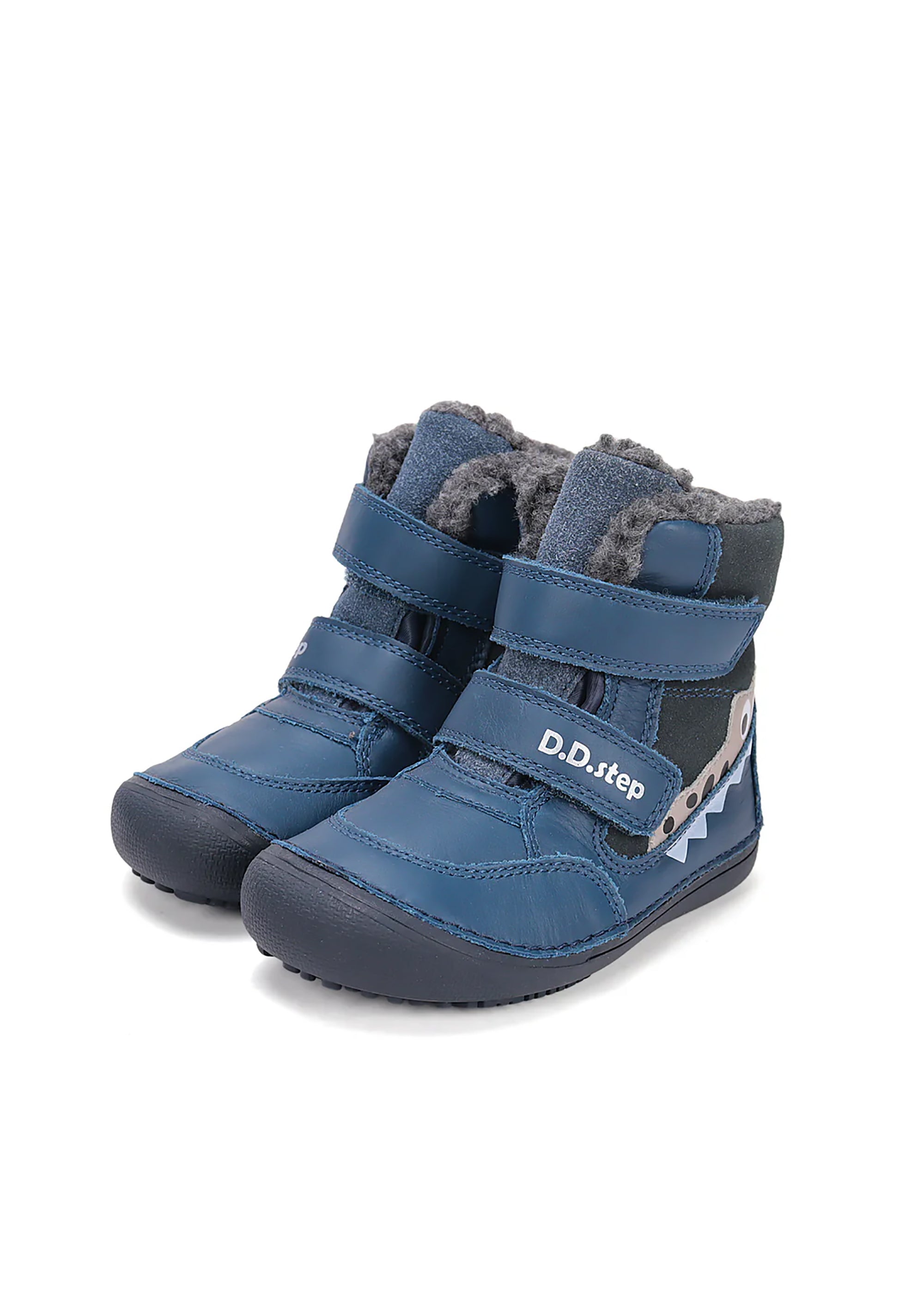 Hienot D.D.Stepin siniset lämpimät talvikengät! Kenkien ulkosivuilla seikkailee kiltti krokotiili.