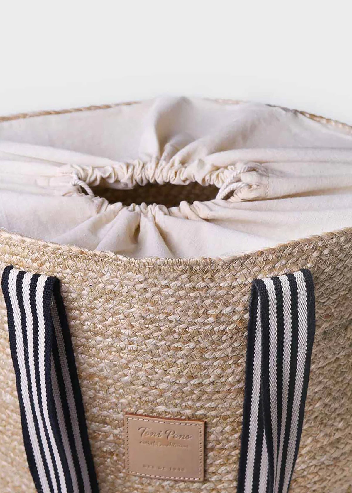 - Materiaali: Juutti, kangashihnat, tekstiilivuori