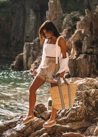 Naisten olkalaukku - Oporto, vaalea, kangashihnat