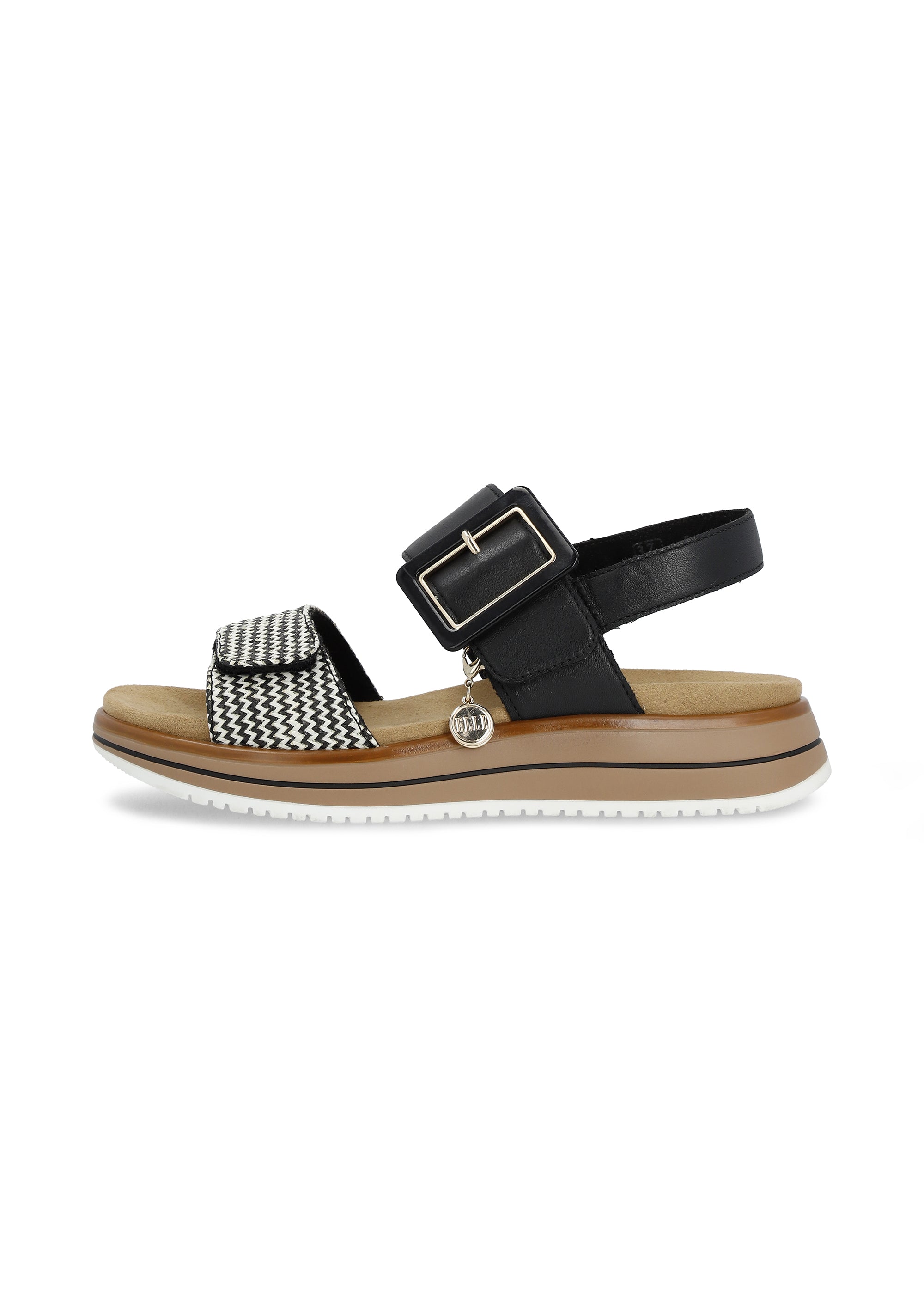 Sandaalit paksulla pohjalla - musta, mustavalkoinen, tarraremmit