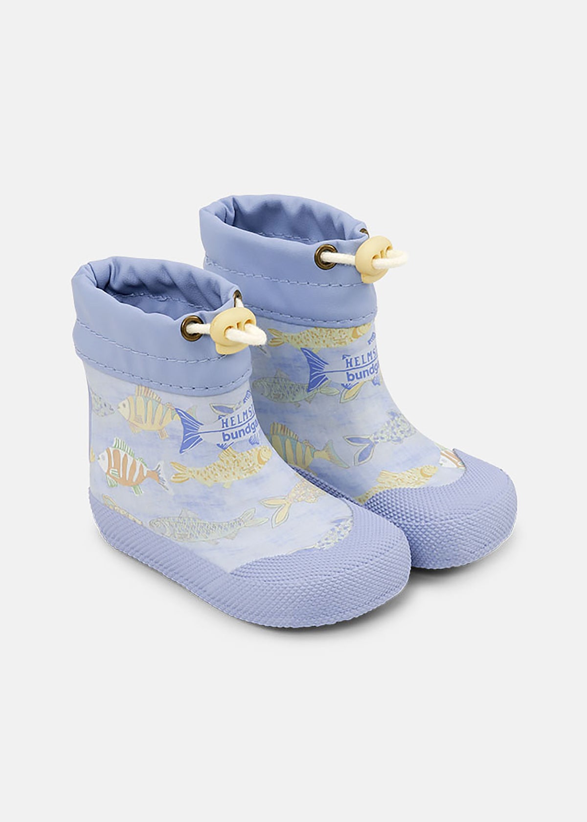 Suloiset Bundgaardin kumisaappaat taaperoille! Tämä erittäin pehmeä ja joustava malli on suunniteltu pienille lapsille, joten se sopii erinomaisesti kävelyharjoituksiin ja ensiaskeleisiin. Saappaat ovat ihanan kevyet, ja varpaille on hyvin tilaa. Nämä ihanat vaaleansiniset pastellinsävyiset kala-aiheiset kumpparit ovat Bundgaardin ja tanskalaisen muotibrändi Helmstedtin yhteistyömallistosta.