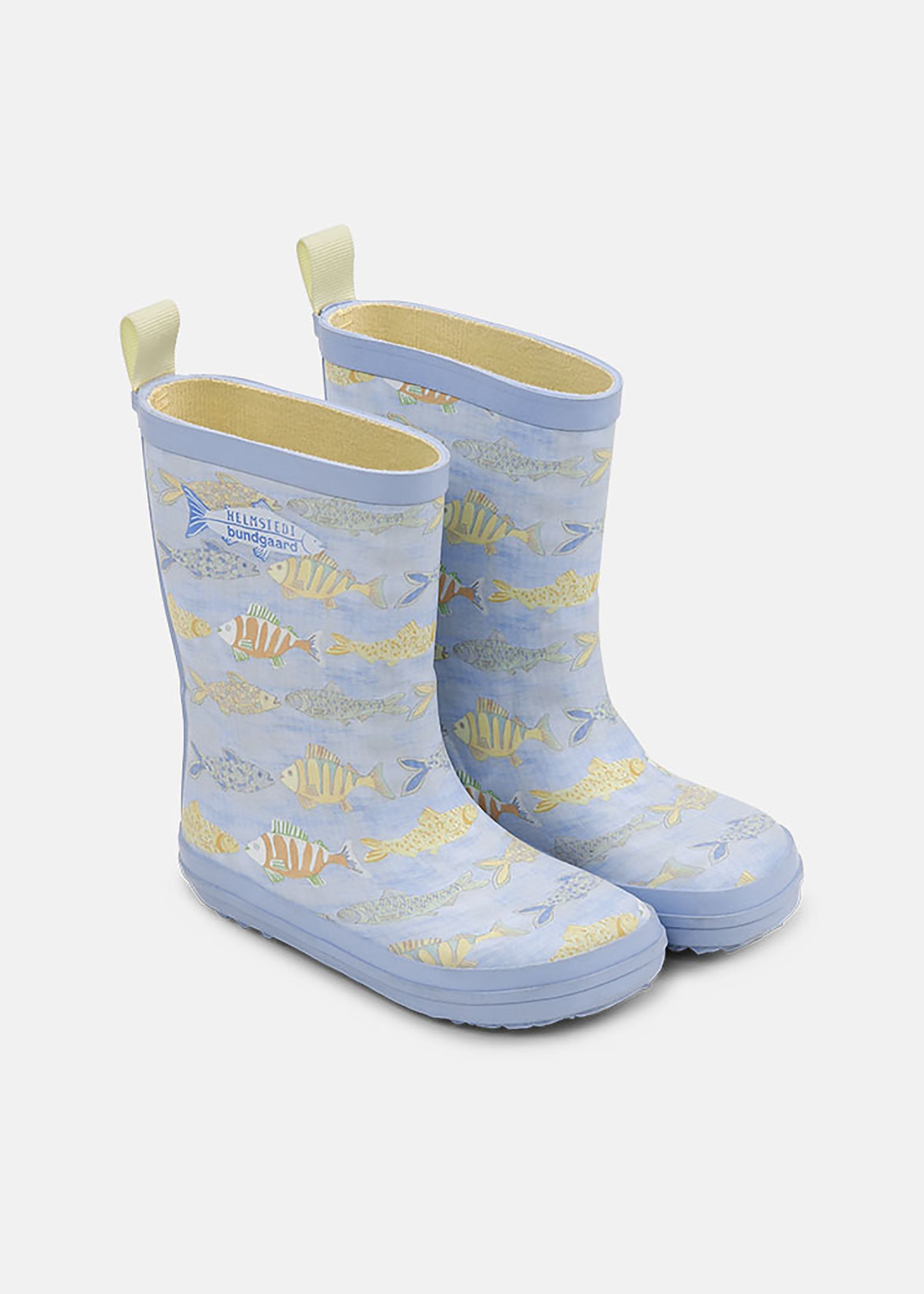 Laadukkaat ja suositusten mukaiset kumisaappaat lätäkköleikkeihin! Bundgaard Charly High on klassikkomalli, joka on ollut bestseller vuodesta toiseen – eikä ihme! Nämä ihanat pastellinsinisensävyiset kala-aiheiset kumpparit ovat Bundgaardin ja tanskalaisen muotibrändi Helmstedtin yhteistyömallistosta.