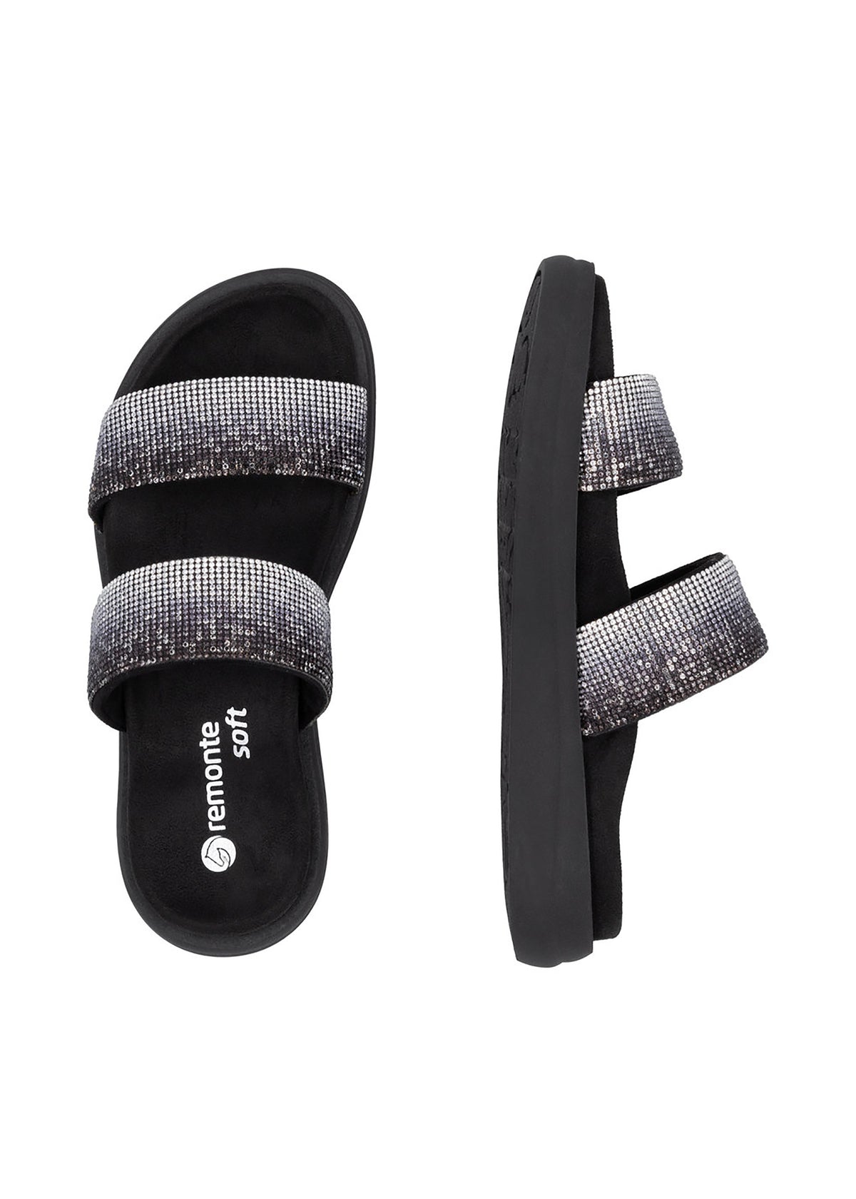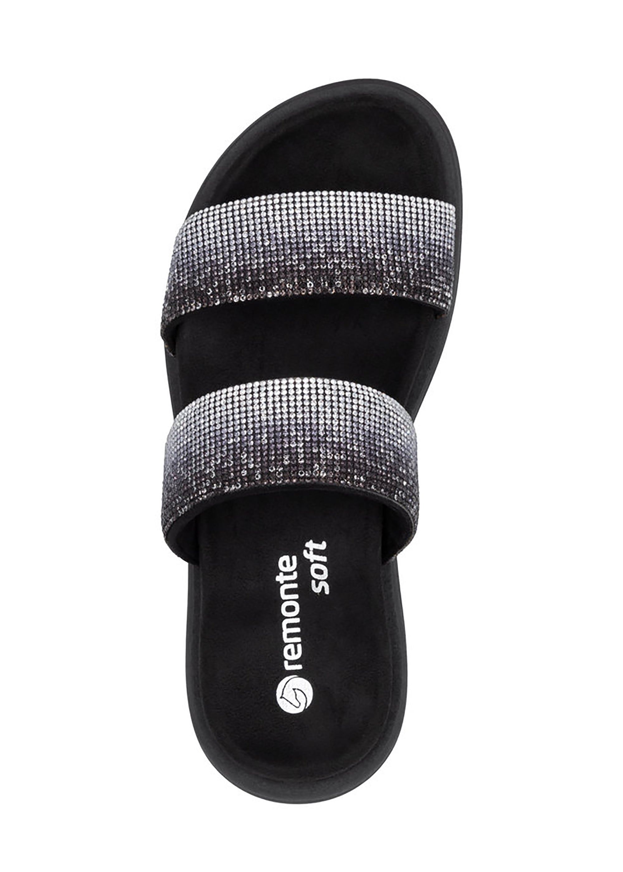 Mageet sandaalit Remontelta! Pistokkaissa on leveät liukuvärjätyt strassiremmit. Ja ovat muuten hauskasti paksut ja pehmeät jalkaa vasten! Remmit on aseteltu kenkiin niin, että pitävät sandaalit tukevasti jalassa. Mukavan pehmeä ja kevyesti muotoiltu Remonte Soft -pohja tuo käyttömukavuutta. Kimaltavaa tyyliä kesäasuun tai vaikka toimiston sisälookiin!