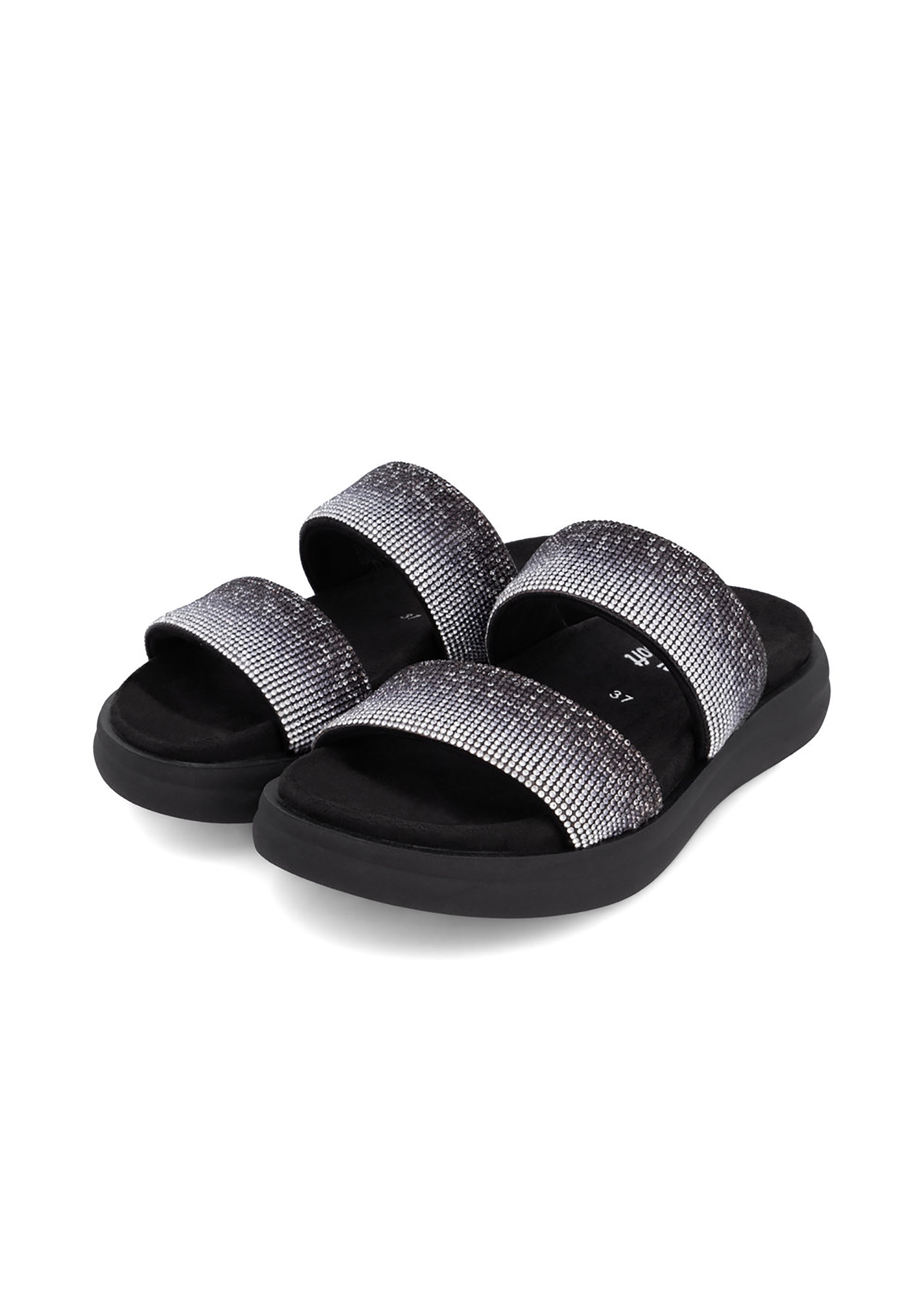 Pistokassandaalit - musta, glitterremmit, vegaaninen