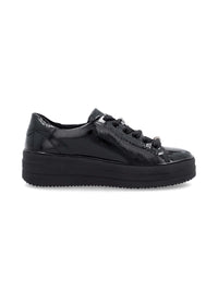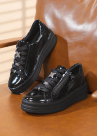 Tennarit paksulla pohjalla - musta kiiltonahka, hopeanväriset nauhakoristeet