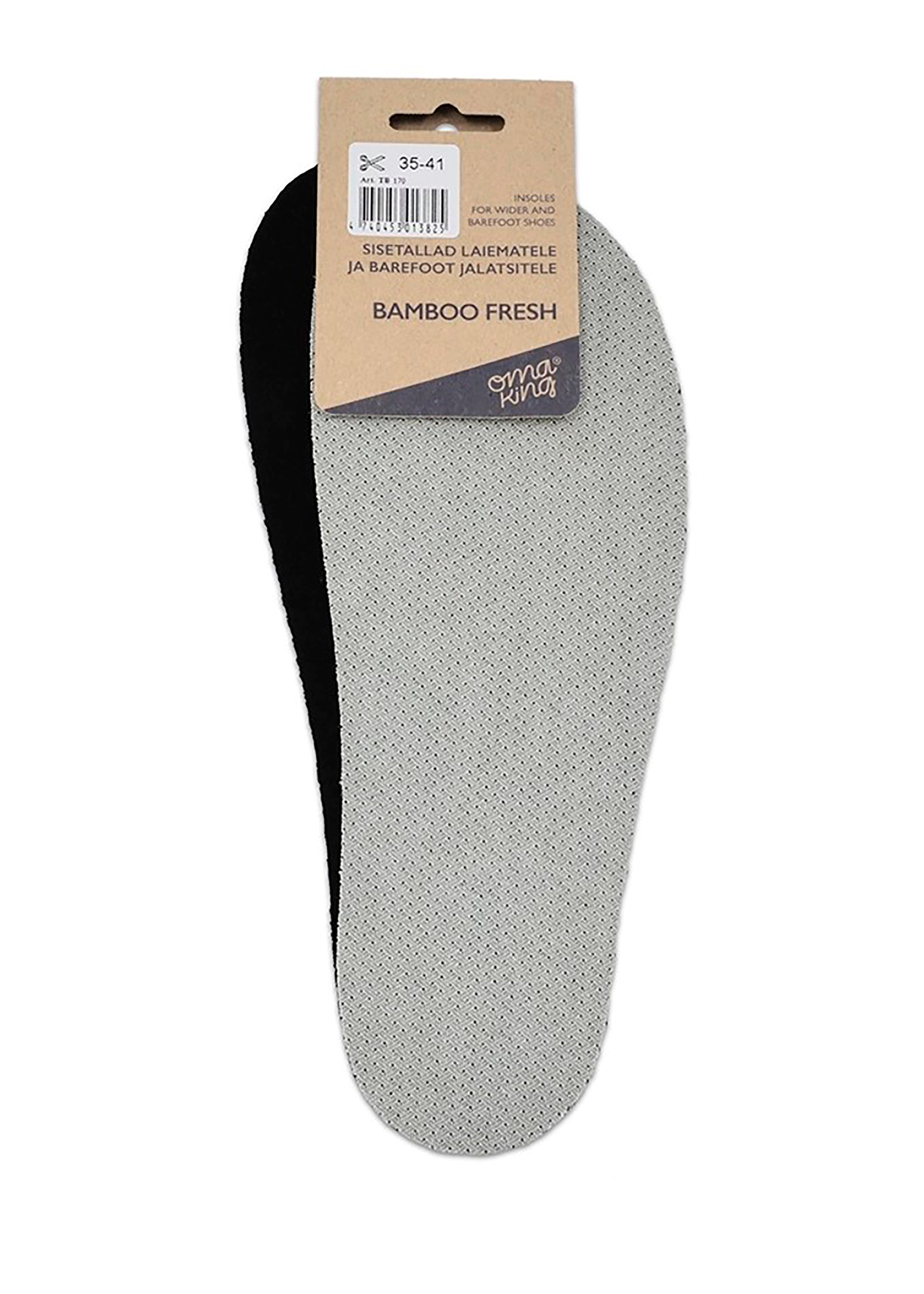 OmaKingin pohjalliset on suunniteltu erityisesti leveämmille kengille ja paljasjalkakengille. Antibakteerinen bambutekstiilikerros on miellyttävä jalkaa vasten ja vähentää tärähdystä kävellessä. Tiiviin vaahtomuovikerroksen ansiosta pohjalliset ovat kestävät ja pysyvät parempina pidempään. Bambupohjalliset ovat 4 mm paksut. Pohjalliset ovat leikattavat, voit leikata pohjalliset sopiviksi omiin kenkiisi.
