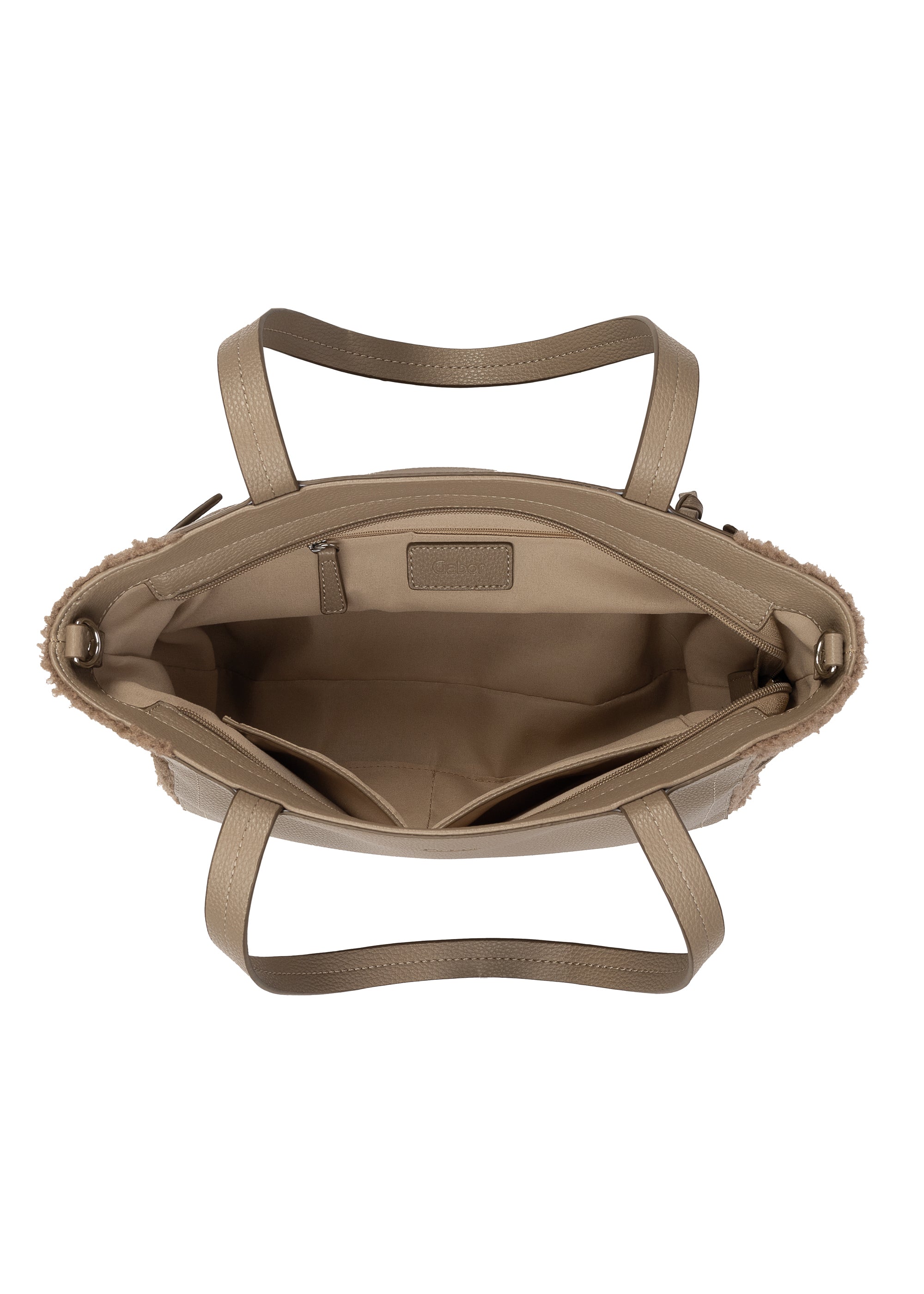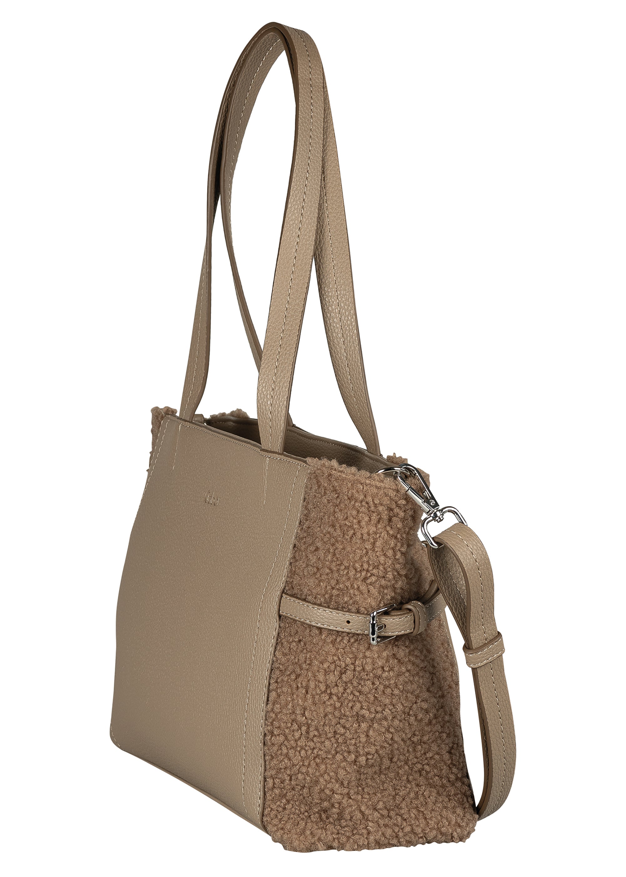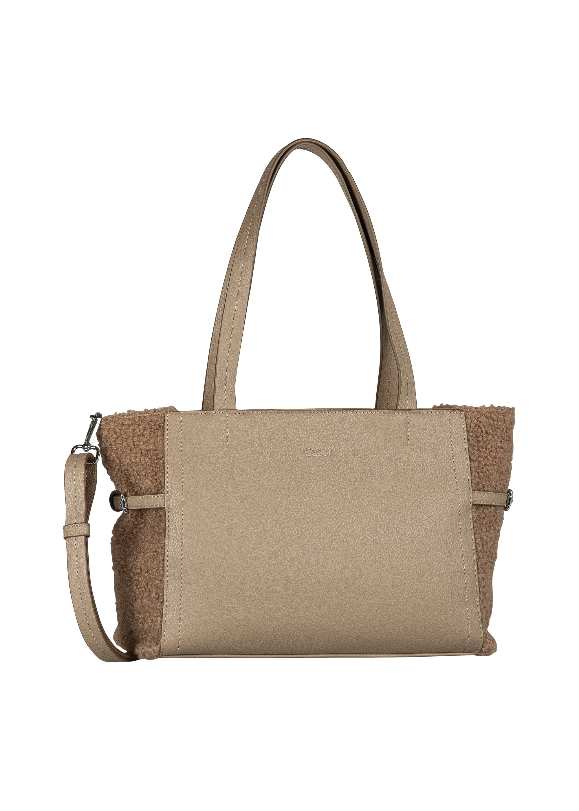 Elegant väska från Gabor! Den ljusbruna axelväskan rymmer mycket olika saker! Söta detaljer i teddypäls har lagts till på kanterna. Väskan kan bäras som handväska i handtagen eller på axeln med den justerbara axelremmen. En underbar väska för många stilar och tillfällen!